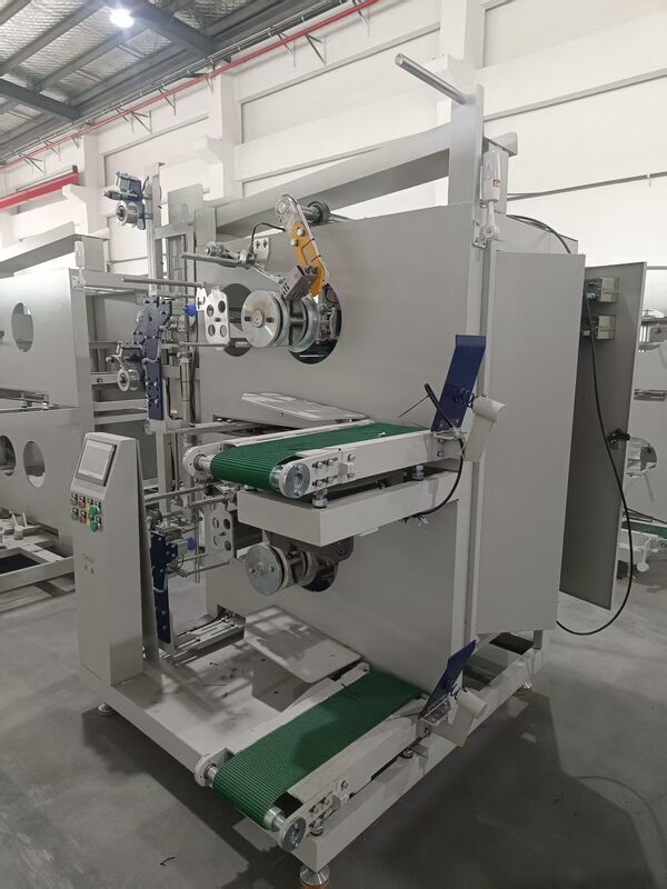 После того, как намоточный пакет достигнет желаемой окружности, он удаляется с линии интегрированной транспортной системой. Новая намоточная трубка подается из магазина одновременно, и следующий пакет наматывается полностью автоматически.